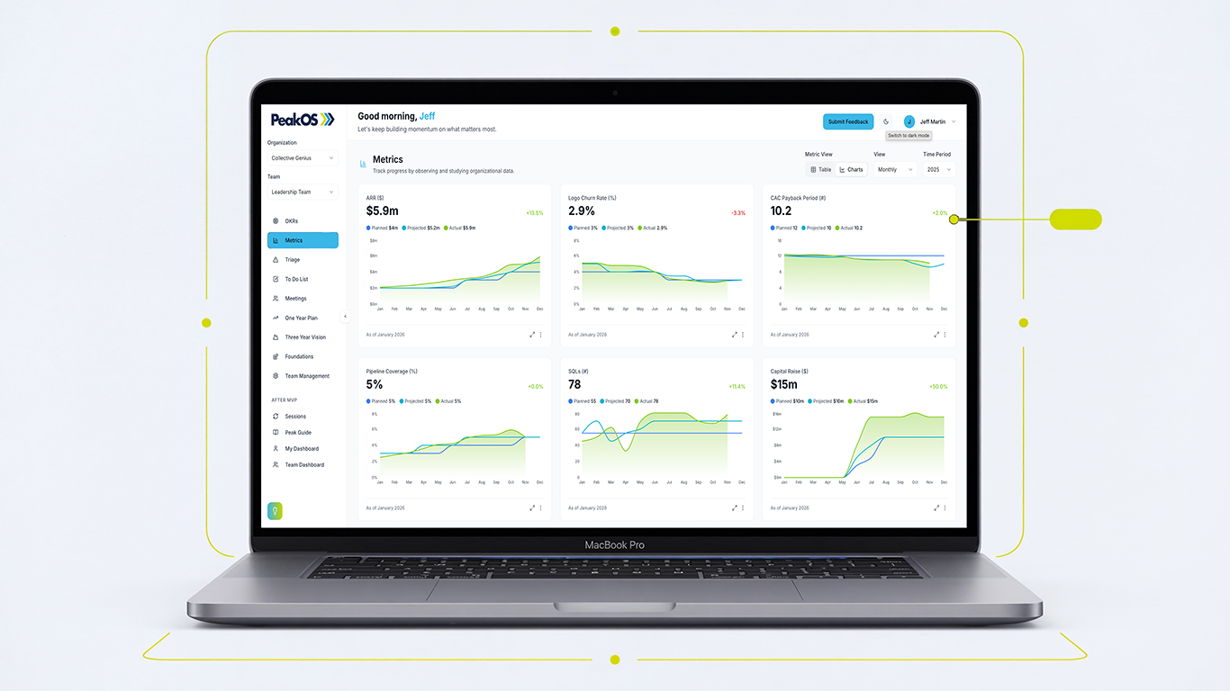 Peak OS doesn’t just surface metrics—it teaches teams how to understand them. Metrics create a shared, objective view of how the business is really performing, turning assumptions into clarity.